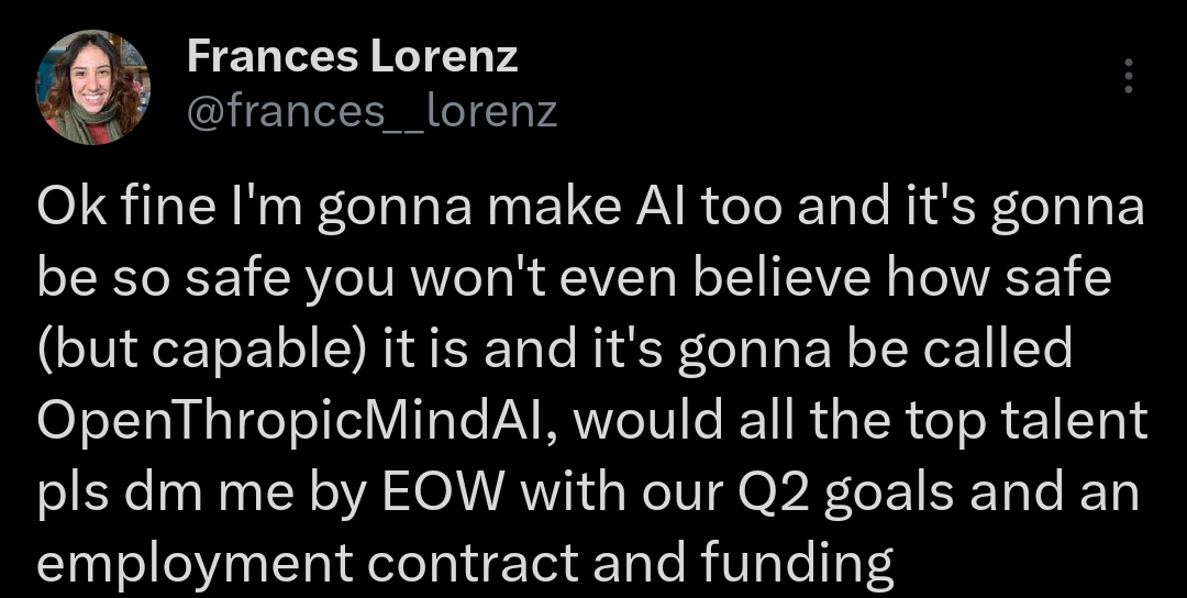 Deep Ganguli, leader of Anthropic’s Societal Impacts team, told TIME (re: the “talking about AI risks while continuing to build AI” thing):